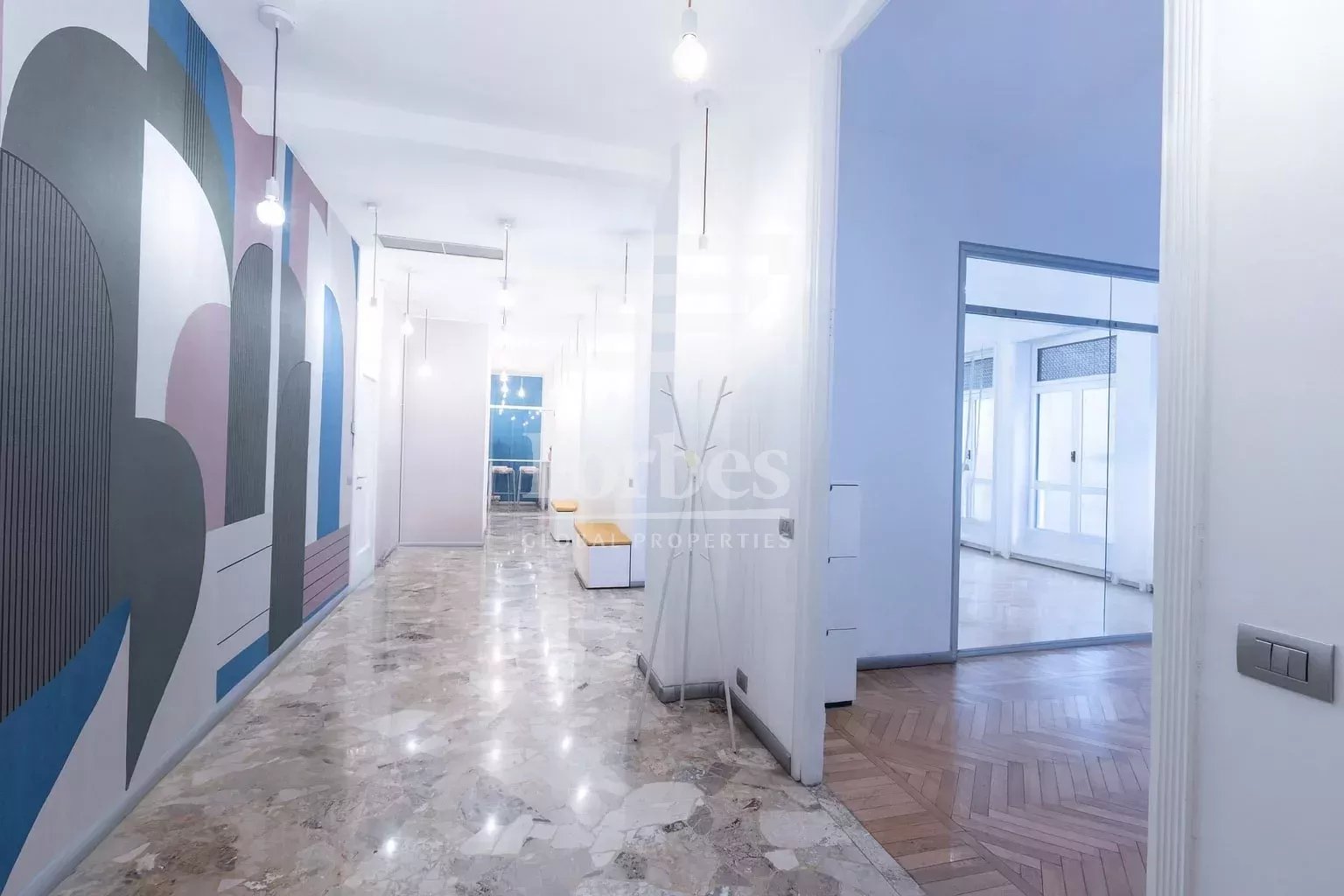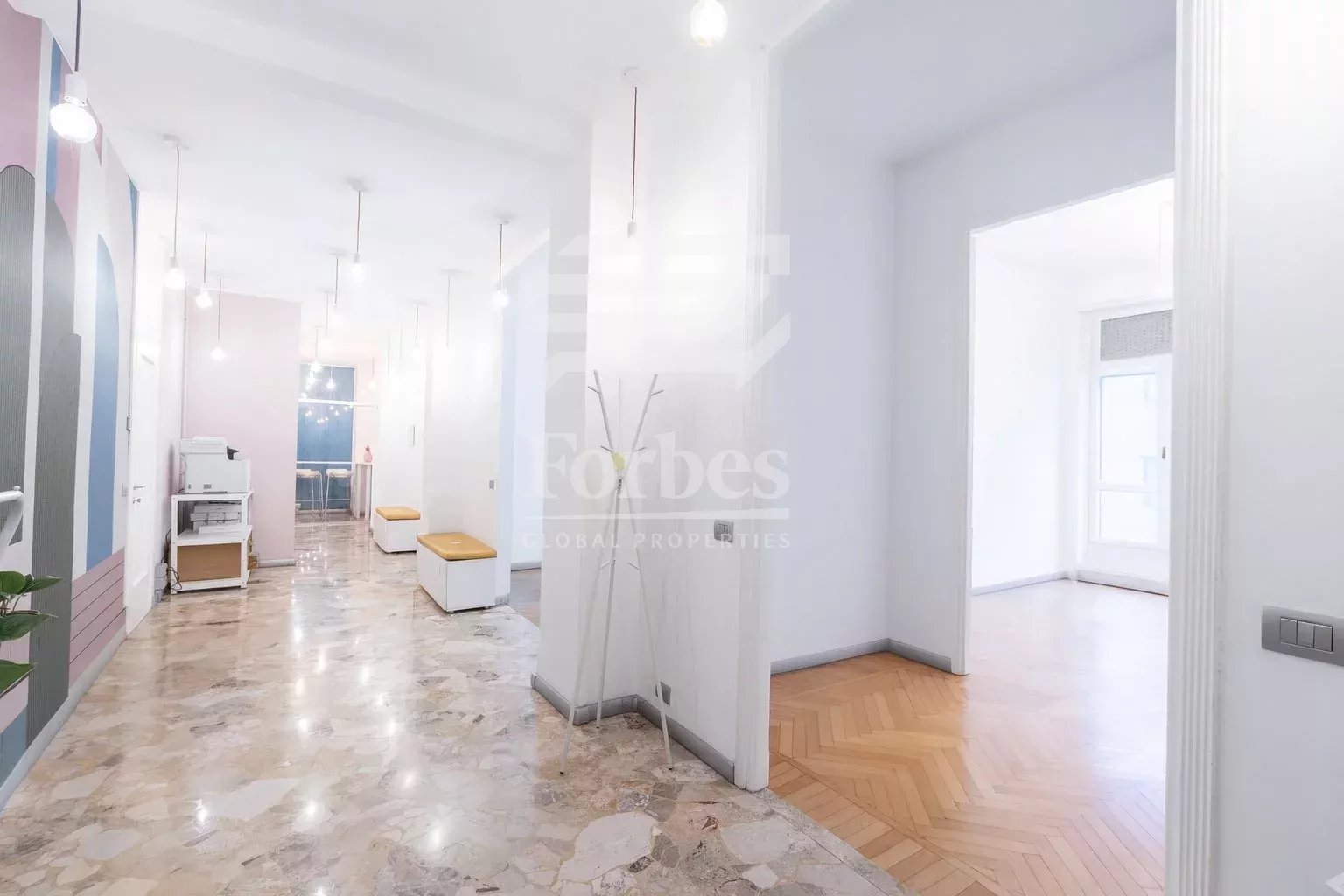 Currently used as an office, the apartment, with an area of about 180 square meters, stands out for its versatility: in fact, it can be easily converted back into an exclusive residence or maintained as a professional representative space.