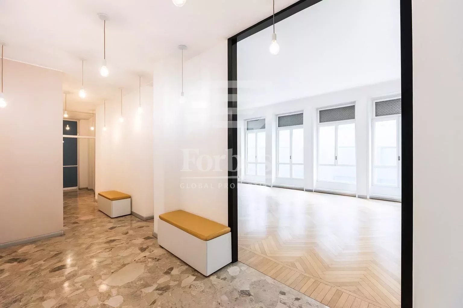 Large windows give perfect natural lighting. The well-kept and understated spaces, together with an elegant and representative entrance, complete the property and emphasize its high profile.